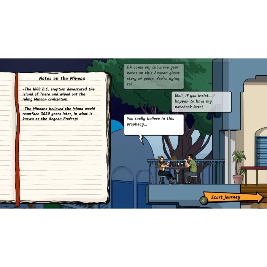 A sunken island trapped in time. Hidden in the depths for several millennia, the island of Thera is full of historical treasures to collect and mysteries to decipher. Discover a lost Minoan citadel, open your way through an ottoman sunken fleet and unlock the doors to an underground palace, as you uncover the details about the folk who lived there and their tragic fate. Exploit a glitch in time to secure information on a persistent map and solve key puzzles before the world blows up and the loop restarts!