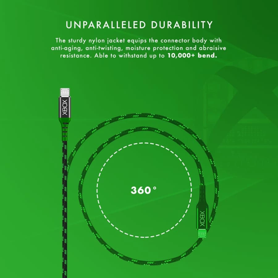 You don’t have to look far to find the perfect charging cable for your Xbox One! This official Xbox One micro-USB cable features an extra-long 4 meter (13 feet) length, meaning you can play and charge your controllers wherever you are in the room! The premium quality nylon braided cable is tangle-resistant and ensures a long lifespan by increasing durability of the cable.