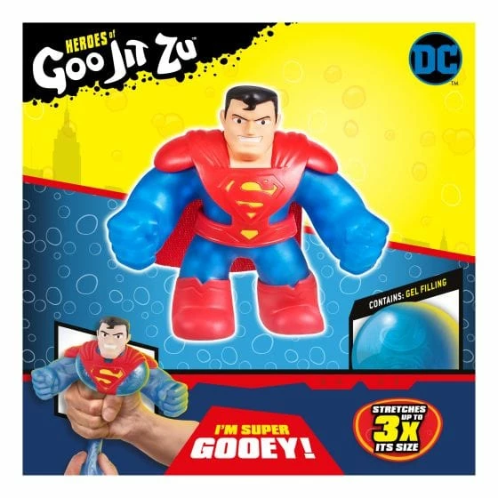 Powerful and protected, Kryptonian Armor Superman’s suit defends him as he fights for truth and justice. Now he has joined forces with the Heroes of Goo Jit Zu to become a Super Gooey Hero! Help Superman battle evil with his Super stretchy goo filled body! This Goo Jit Zu DC Hero can stretch, twist and squish his unique Goo filling and move in a way like he never has before! With his extra, super gooey filling you can squeeze his body and watch his blue gel filling swirl inside him! Play with your Superman action figure in a new GOOEY way and help save the day – with NO mess! Squeeze, squish and stretch his arms, legs and body! His amazing squishy body can stretch up to 3 times its size and then return to its original shape and size! Collect all 4.5-Inch DC Heroes, including Heavy Armor Batman, Reverse-Flash and The Joker in his black tuxedo! Each DC Hero has their own unique goo filling with a different texture and feel like you have never seen or felt before!