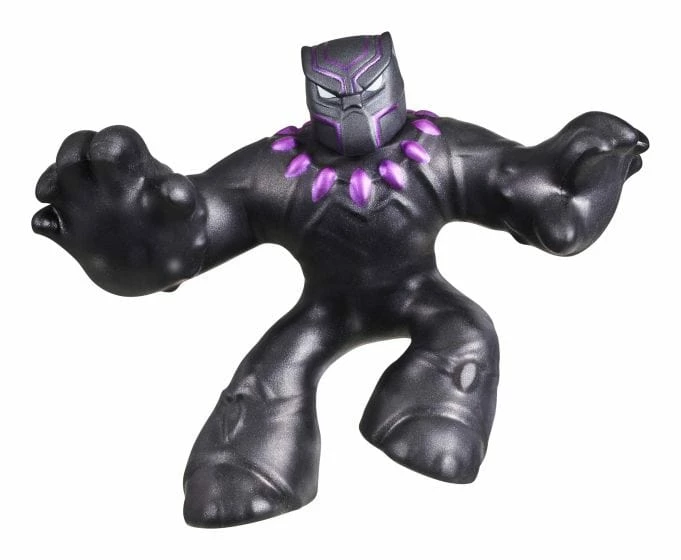 Vibranium Power Black Panther is the warrior king of Wakanda. He uses the power of Vibranium to serve and protect him. See him squish and stretch his Goo filled body as he defends his people and his kingdom! This Goo Jit Zu Marvel Hero can stretch, twist and squish his unique Goo filling and move in a way like he never has before! With his extra, super squishy Goo you can squeeze his body and watch his special purple water bead filling bulge out and move around inside of him! Play with your Black Panther Hero in a new GOOEY way and help save the day – with NO mess! Squeeze, squish and stretch his arms, legs and body! His amazing squishy body can stretch up to 3 times its size and then return to its original shape and size! Collect all 4.5-Inch Marvel Heroes, including Radioactive Spider-Man, Miles Morales, Thor, Thanos and Symbiote Venom! Each Marvel Hero has their own unique goo filling with a different texture and feel like you have never seen or felt before!