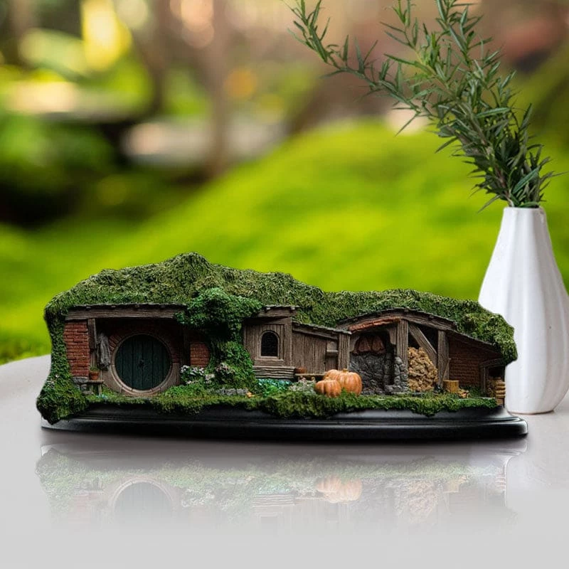 Overlooking a stand of mature pines, 19 and 20 Pine Grove features an adjoining workshop and wood shed. These Hobbit homes have been intricately hand-painted and are a fantastic piece perfect for any fan’s collection.