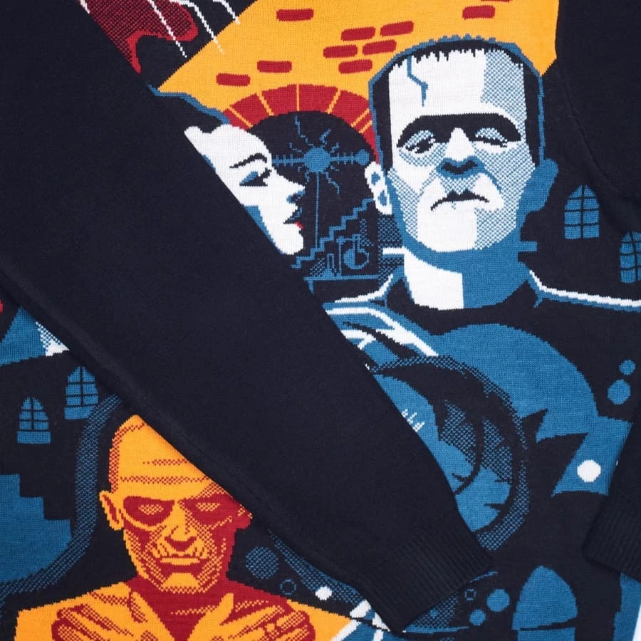 Looking to add that extra fear factor to your Halloween? Say no moreβthis cool jumper does the job! Keep in good company this Halloween as this spooky high-quality sweater features the most iconic group of monsters: Frankensteinβs creature, a Mummy, a Creature from the Black Lagoon, and Frankenstein’s wife. This jumper is sure to make you the talk of any Halloween party you attend!