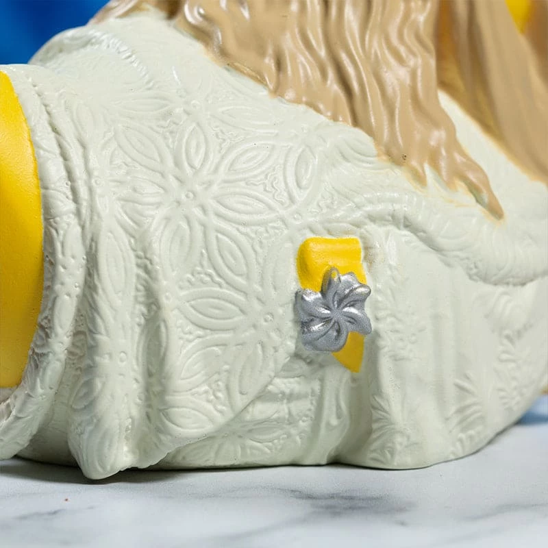 Wielder of one of three great elven rings, Nenya, Galadriel certifies her status as one of the most significant elves to remain in Middle Earth. Her beauty, power and knowledge is unmatched even while as a quacking duck. Coming boxed in an awesome displayable βLord of the Ringsβ tub display stand, this one of a kind collectible is great for fans of the series to stock up on.