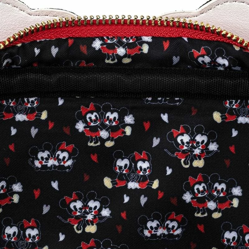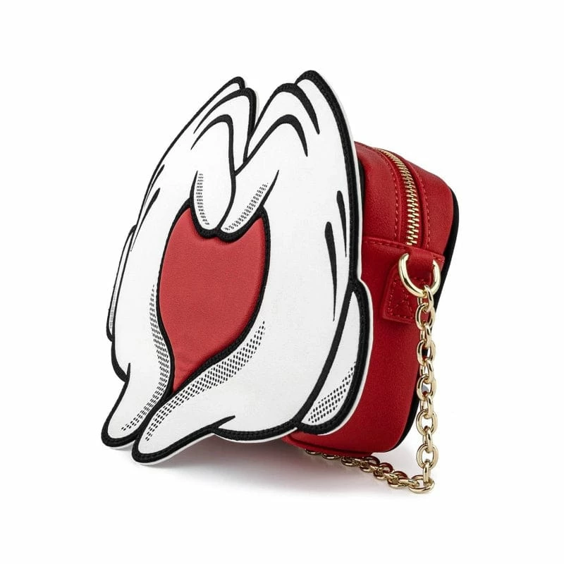 Show the love with this unique official Disney crossbody bag with the famous gloved hands of Mickey and Minnie Mouse in the shape of a heart!