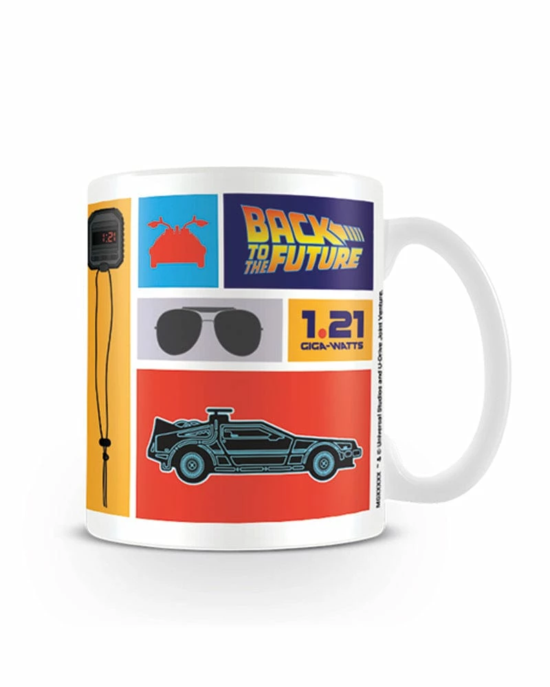 Make sure everyone knows you’re a big fan of Back To The Future with this stylish official mug featuring bright retro coloured panels with art of various iconic symbols from the films!