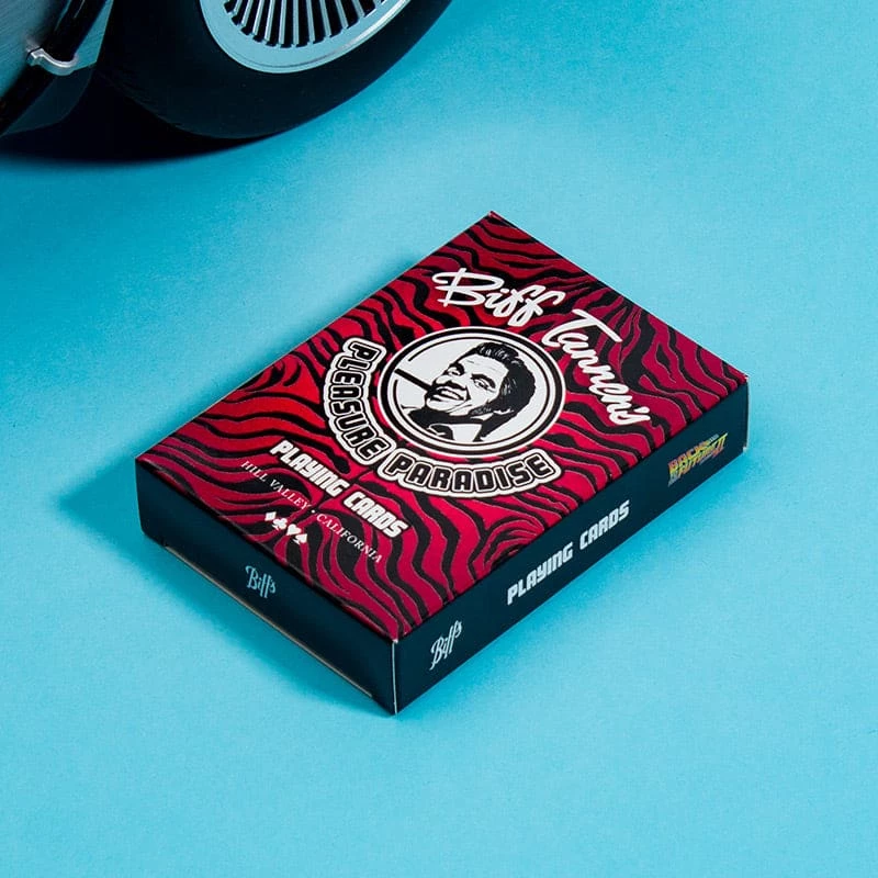 Make your own luck with this fantastic official Biff Tanner’s Pleasure Paradise playing cards! Inspired by the casino from Back To The Future II, this cool set of cards is perfect for any fan to bring to the next game night!