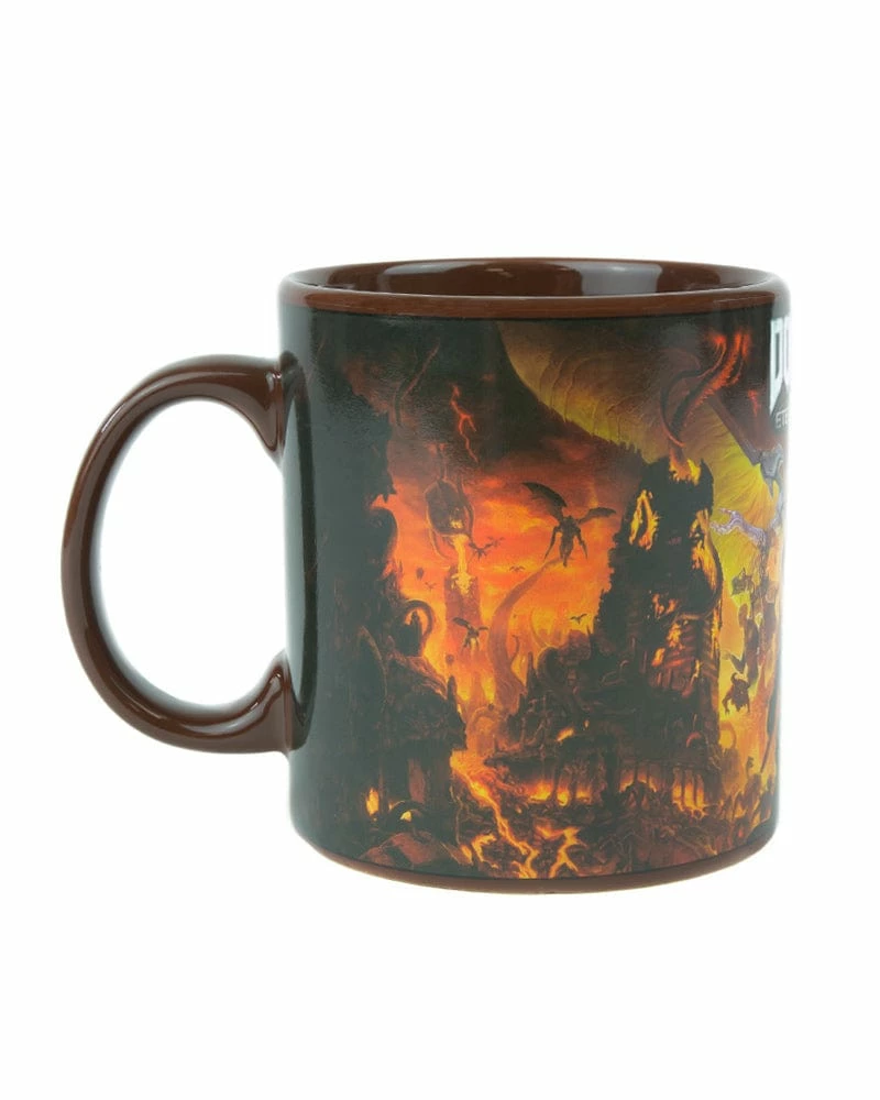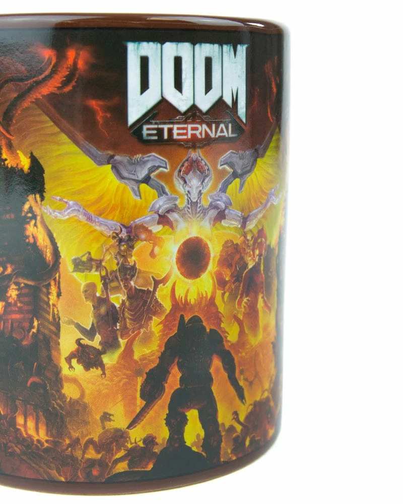 Take a drink and get back into the action, with this official DOOM Eternal mug. Featuring the iconic artwork from the hit new first-person shooter game, this is a collectable, displayable mug, perfect for fans of the DOOM franchise!