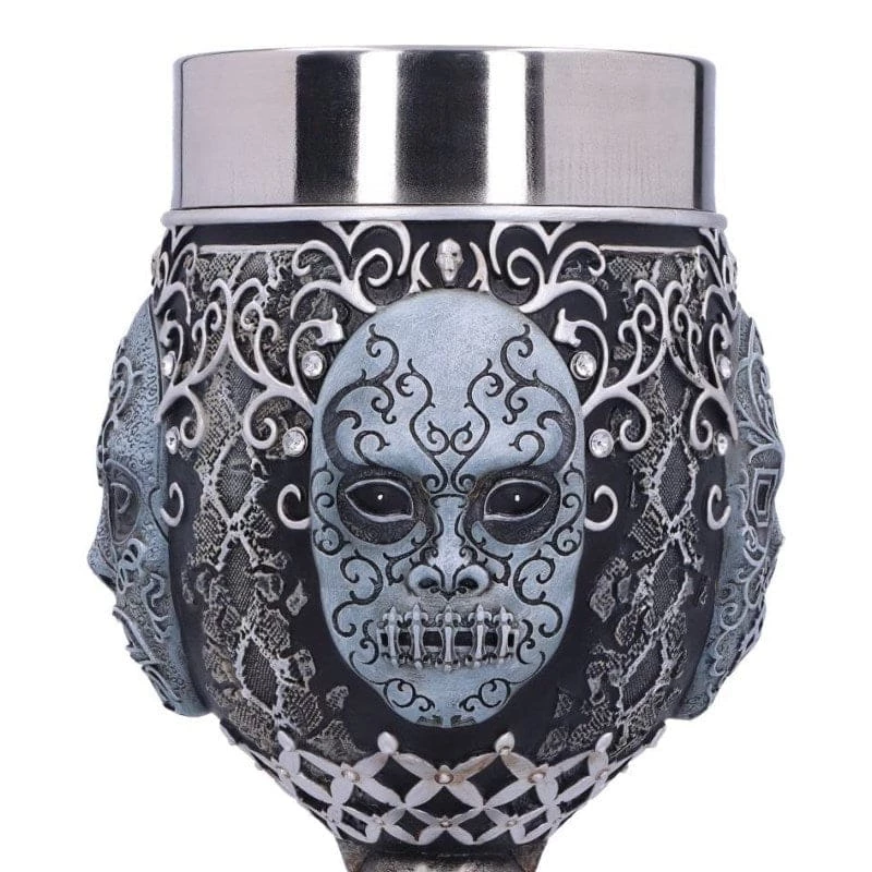 Pledge your allegiance to the Dark Lord with this incredible official Harry Potter Deatheater goblet! With an eerie design featuring intricate mask details, this high quality piece of merchandise is sure to make any witches, wizards and muggles envious!