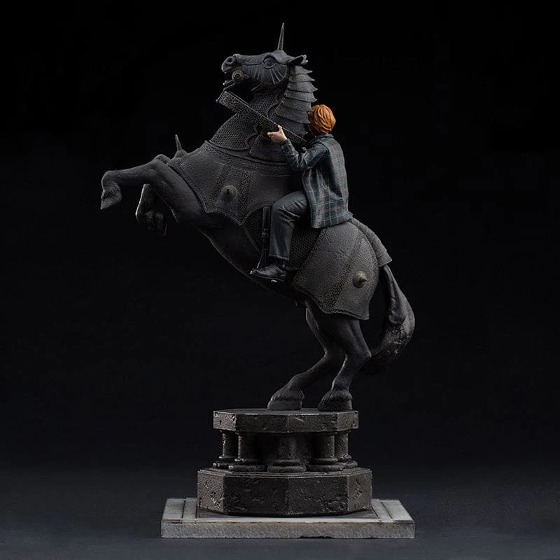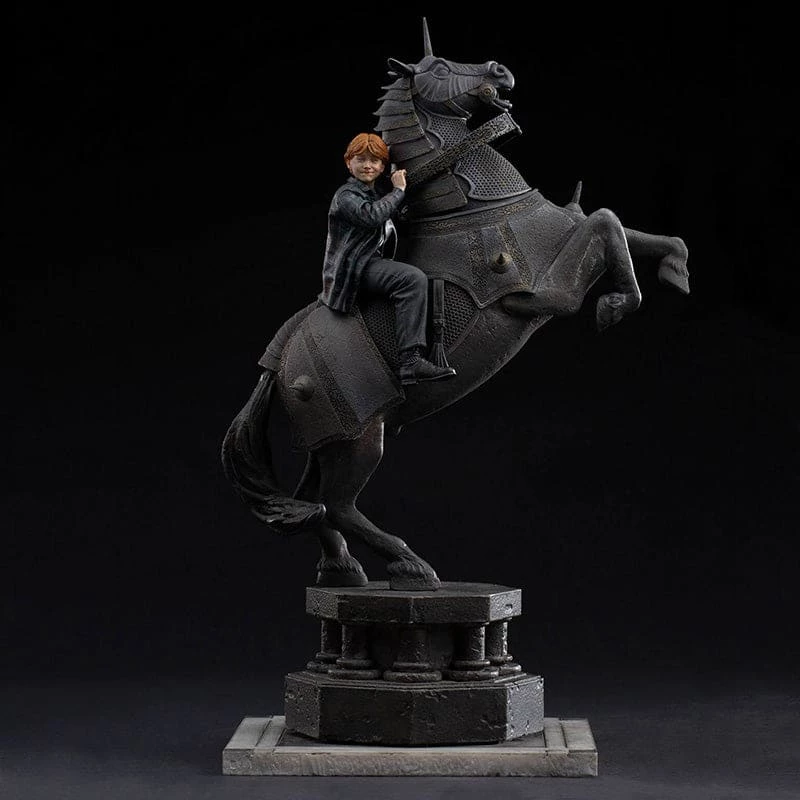 Alongside his typical humourous nature, Ron Weasley is also a loyal and brave friend who steps up when he needs to. This fantastic figure portrays the red-headed wizard mounted on his knight piece from the gigantic tense game of chess wherein he sacrifices himself for the trio to succeed. Manufactured by Iron Studios with screen accurate design, careful craftmanship and intricate hand-painted detailing, this official figure is a must-have addition to any fan’s collection!