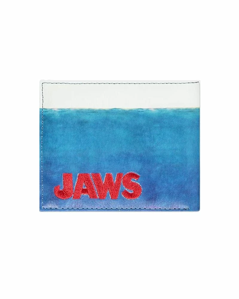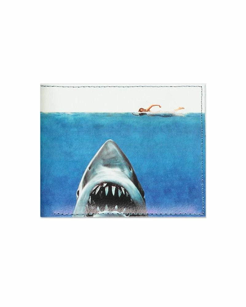 Represent the legendary aquatic horror film with this high quality official Jaws wallet depicting the famous poster of a man unknowingly swimming above the terrifying shark.