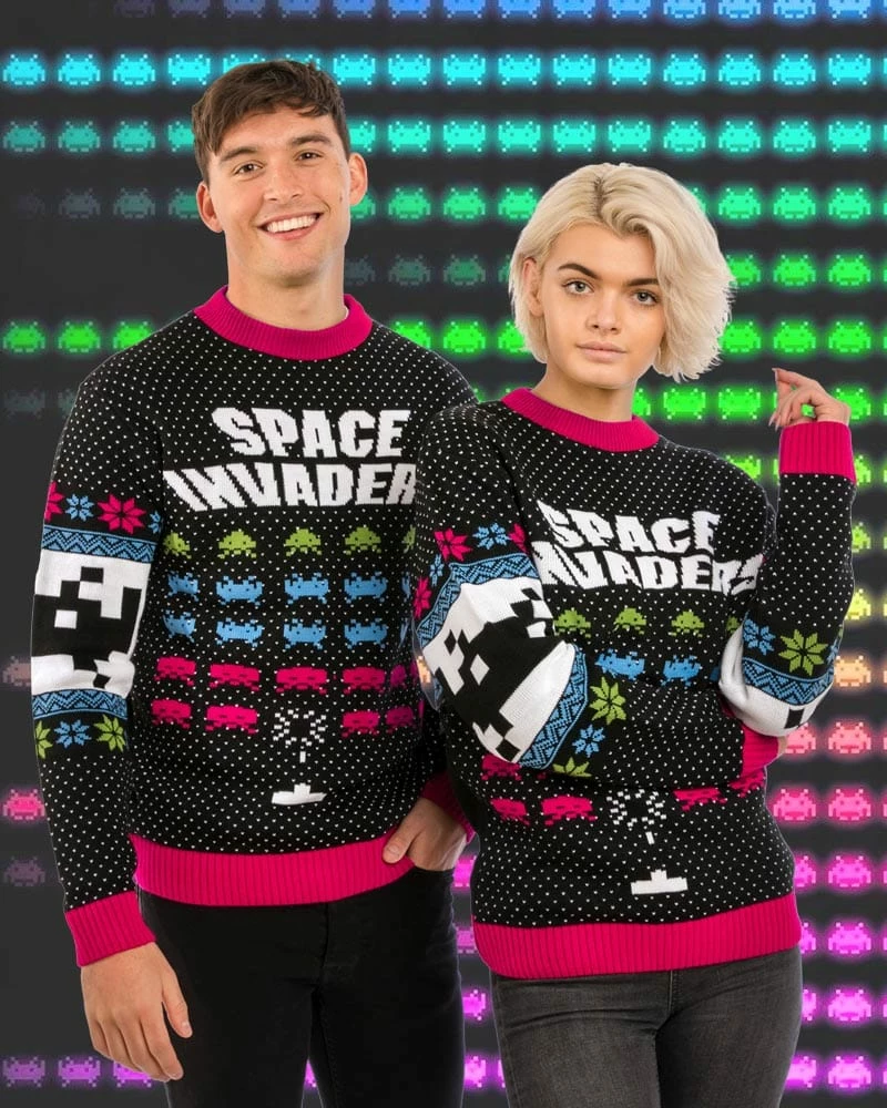 Pew, pew, pew! Get retro this Christmas, with our official Space Invader Xmas jumper! Featuring all of the iconic alien invaders from the original game, this 100% knitted ugly sweater is the best way for retro gamers to celebrate the holiday season.