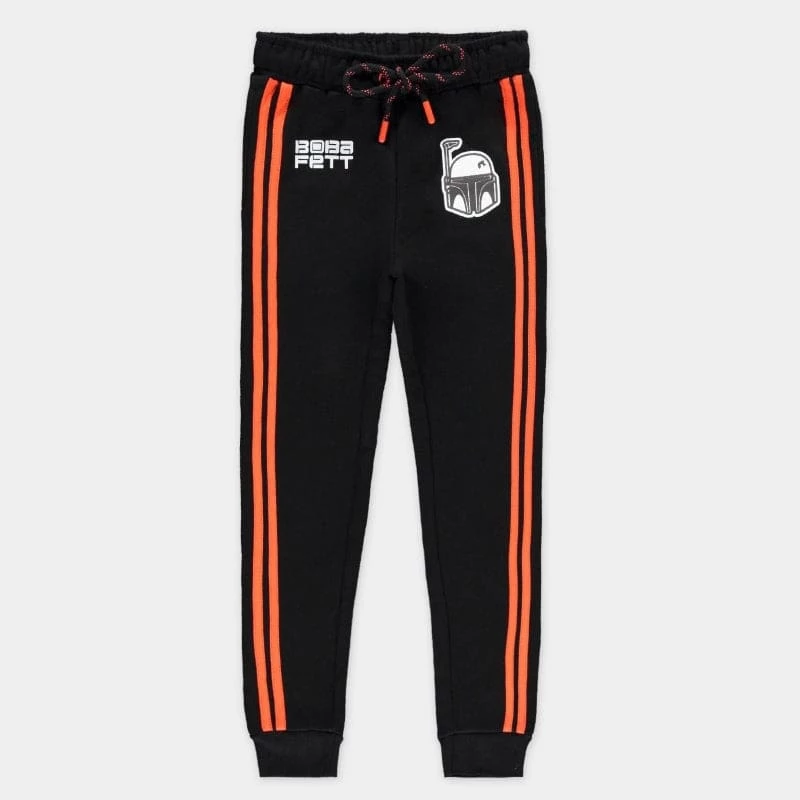 Complete your Mandalorian armour while wearing these black sweatpants with contrast stitched-on striping along legs stylish printed graphics at front, side pockets as well as the iconic printed logo on the back and ribbed cuffs. For any Star Wars fan, these are a must-have!