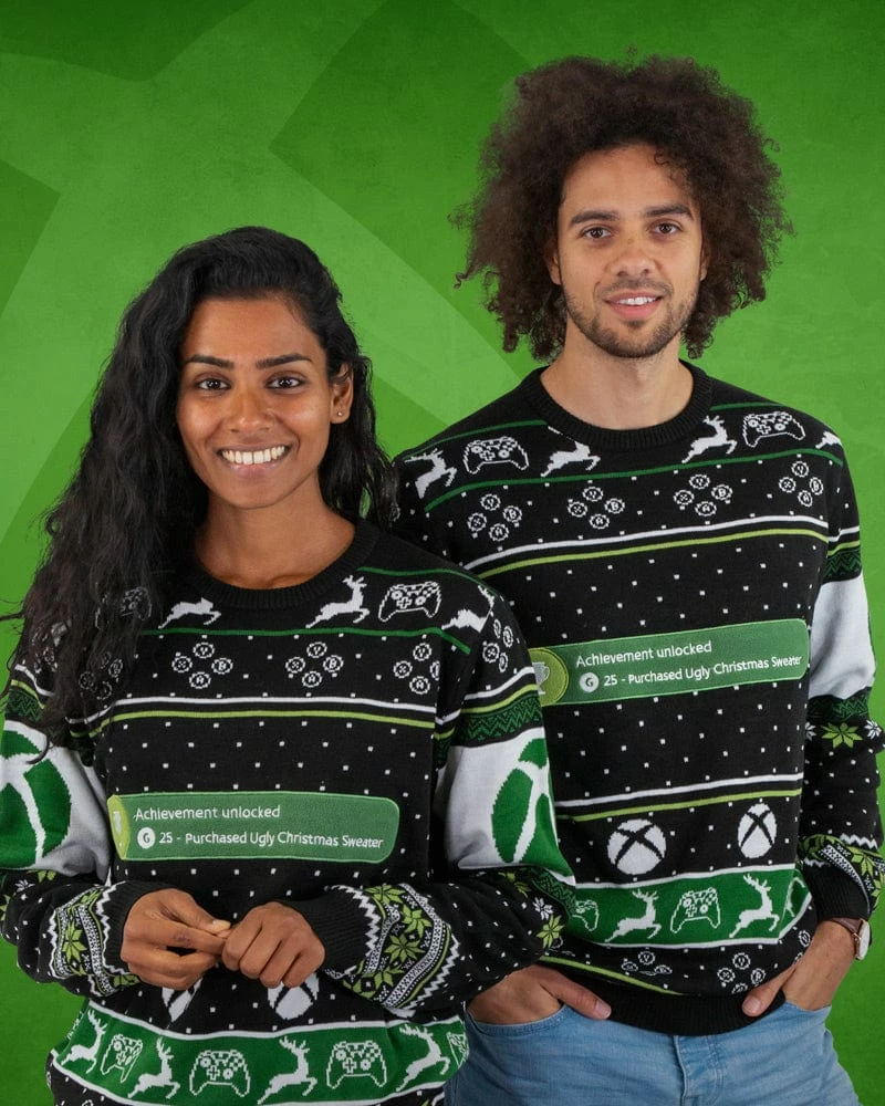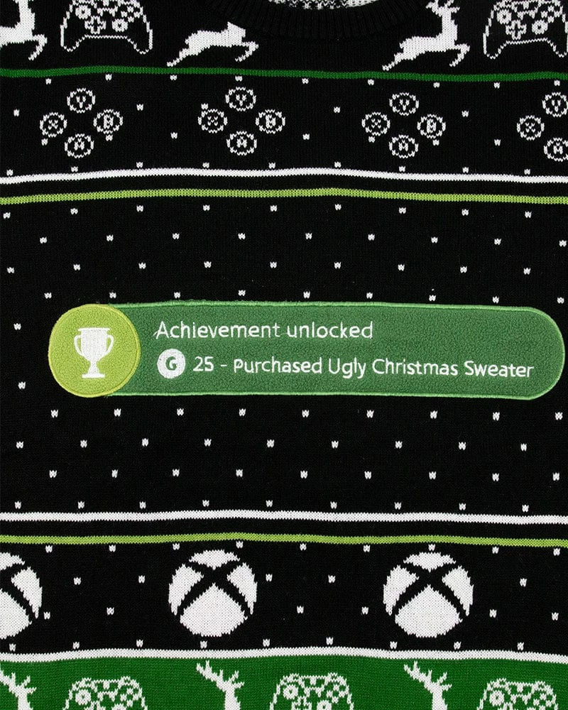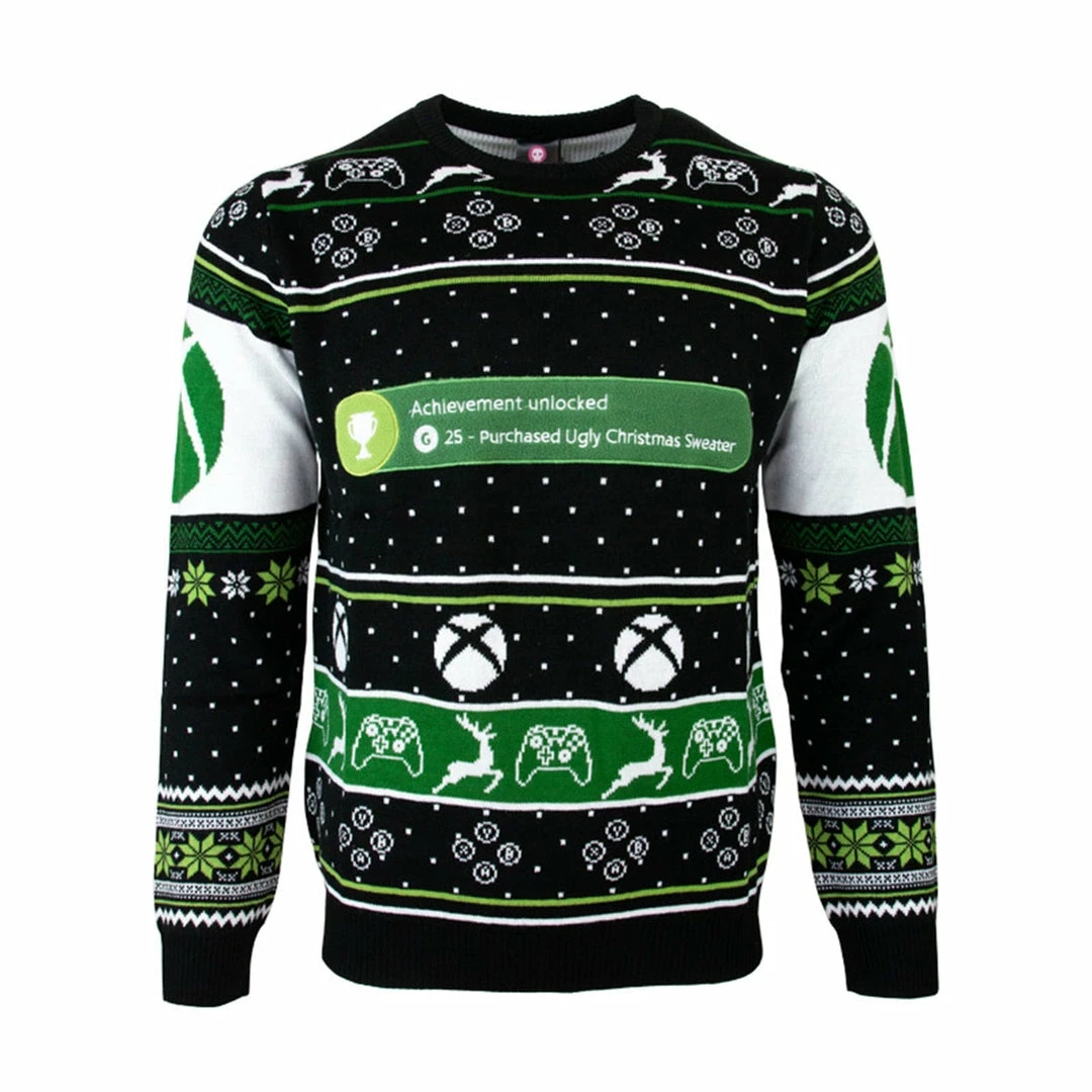 Given the thumbs up by Master Chief himself, this officially licensed jumper by Microsoft features a gorgeous Nordic design decorated with snowflakes and festive ABXY buttons. This 100% knitted winter garment includes the appearance of the iconic Xbox βAchievement Unlocked: Purchased an Ugly Sweaterβ bubble as a centrepiece, making it a staple wardrobe piece for any Xbox lover.